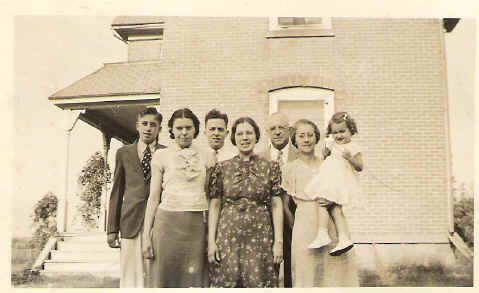 Given what we know from Forrest's journal, that Mabel and Harvey lived in the house at the time of his birth and following, we believe they are the other couple in the picture. All this allows us to make a pretty sure assumption that Mabel was the daughter mentioned in Samuel's obituary, the one who helped her mother get her father's body out of the well.