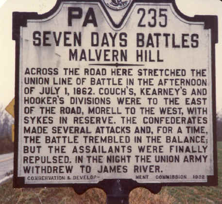 Malvern Hill Golden Book of the Civil War[1] provides the following references to and description of the Battle of Malvern Hill. Background: The Confederates were led by Gen. Robert E. Lee and the Union by Gen. George McClellan. Malvern Hill was the last engagement in what became known as the Seven Days’ Battle.