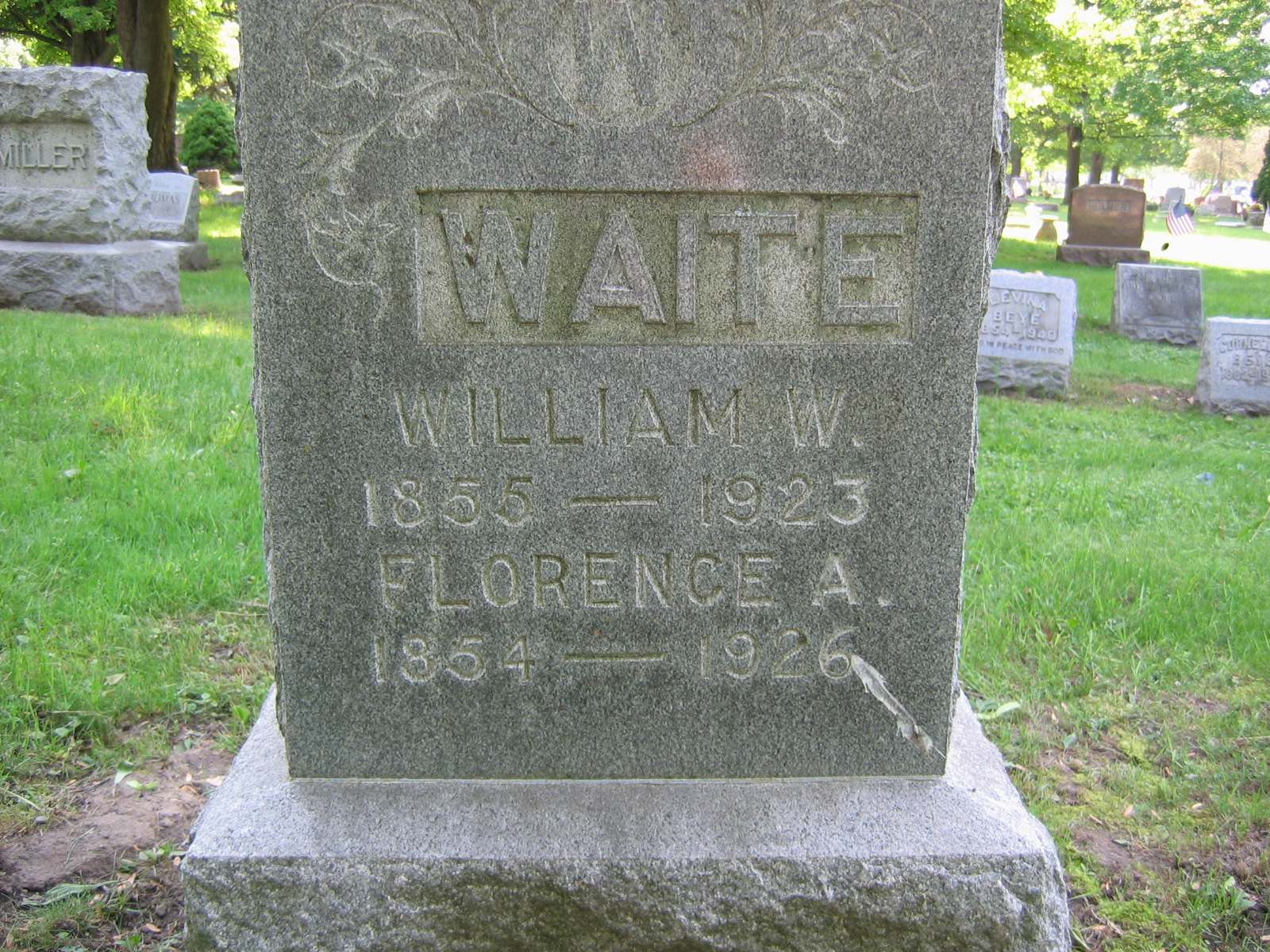 township in the county of Montcalm. That fits well since we know they were back in Pierson for Mont’s birth. Something puzzling, however, is the fact that on this census the father in the family is listed as “Harmon,” similar to the name given us at the Greenwood Cemetery in the 1980s. We don’t know what to make of that. Fortunately, we had gotten the correct name from the Archives several years before censuses on the Internet came along. LATER YEARSThere are hints along the way that the marriage of Harrison and Florence had reason to be rocky. We’re not sure exactly how long it lasted, but after their divorce, both of them remarried. Florence was married twenty-six years to a William Wesley Waite. He had two almost grown children named Fred and Carrie. If indeed at any point in her youth Florence had strayed from the faith of her parents and her roots, she clearly came back to them, likely very early, because the last decades of her life show her to be nothing but a godly woman, a godly mother, and that William Waite was also a godly man. (I wish “someone” between her and me were still around to fill in that whole picture for me.) The following year Harrison remarried to a lady named Syntha Marshall, something else we wouldn’t know except for the Archive papers. DEATHS AND BURIAL