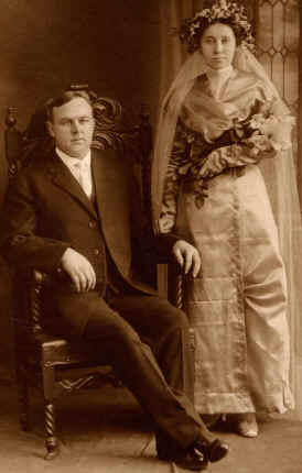 A church wedding was planned for December 13, 1913, in the little North Chester church. Fern wore a beautiful long dress of blue velveteen and lace. The simple red brick country church with its steeple and bell was packed as Fern Porter became Mrs. M. E. Hawkins.