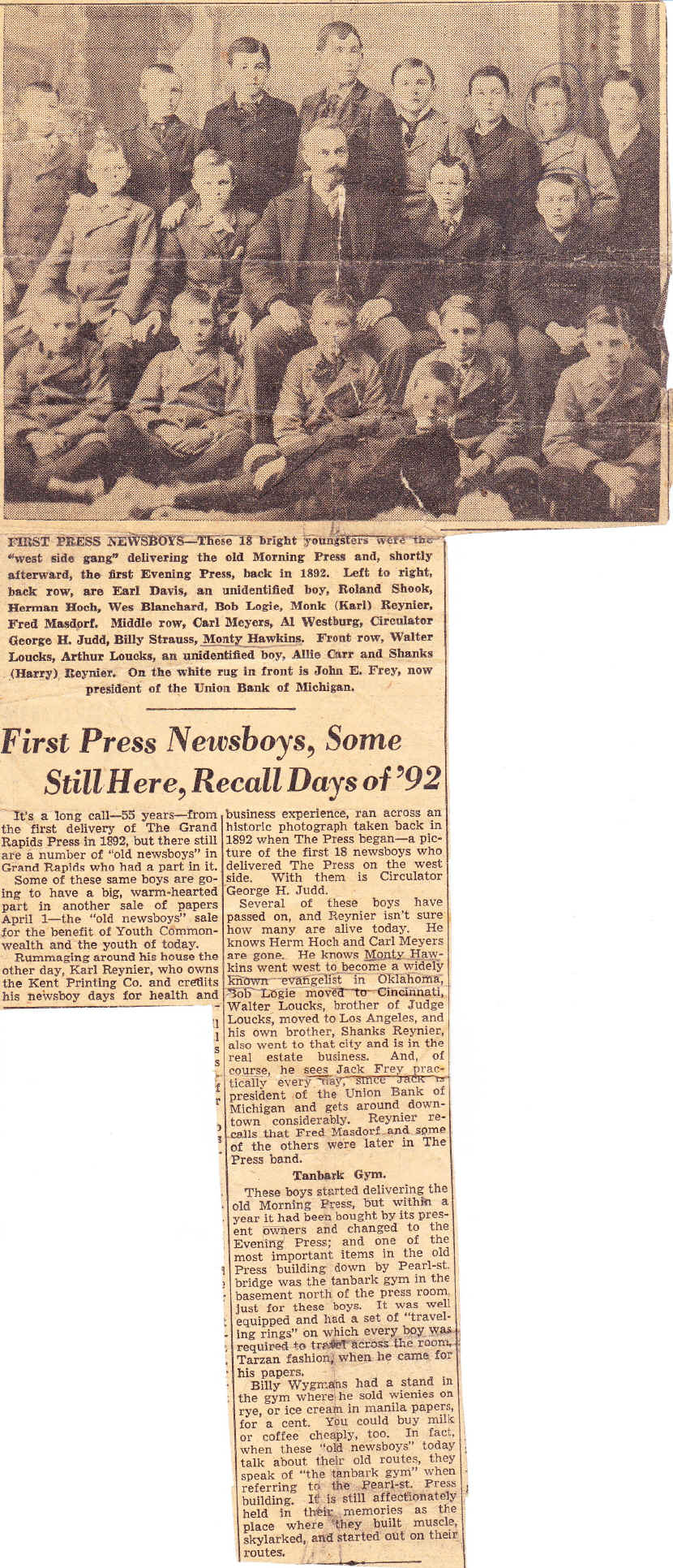 Newsclipping about Monty as a newspaper boy.